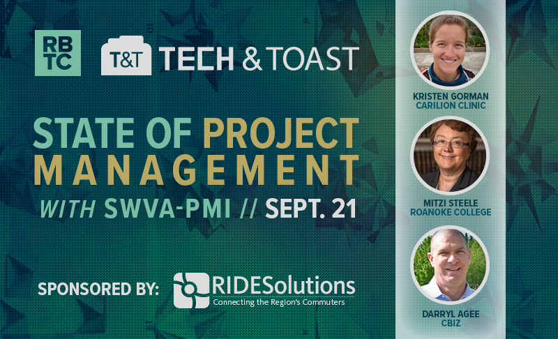 "Join us at the next Tech and Toast on September 21 as we learn about project management trends from members of the Southwest Virginia Project Management Institute chapter (SWVA PMI).